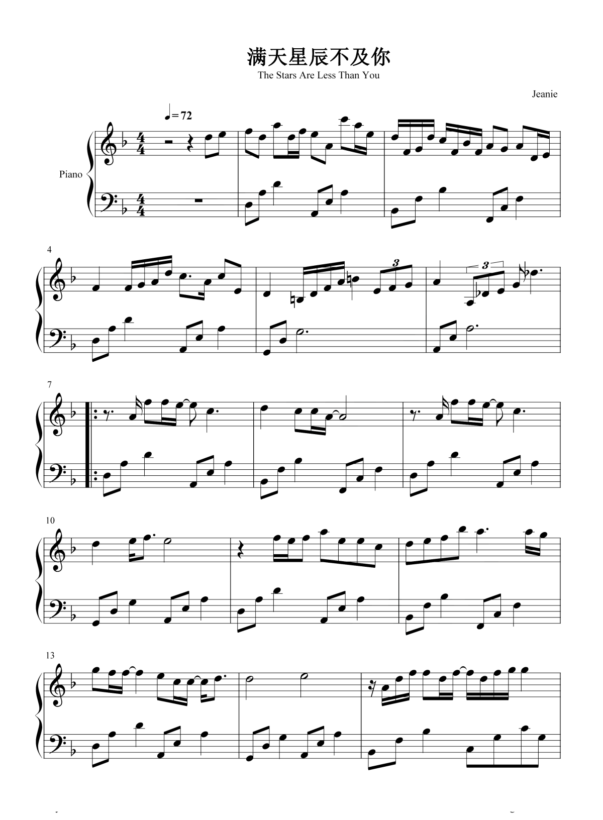 《滿天星辰不及你》鋼琴譜----重慶滾石琴行